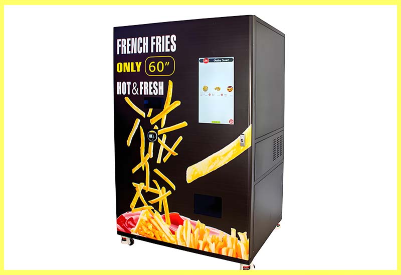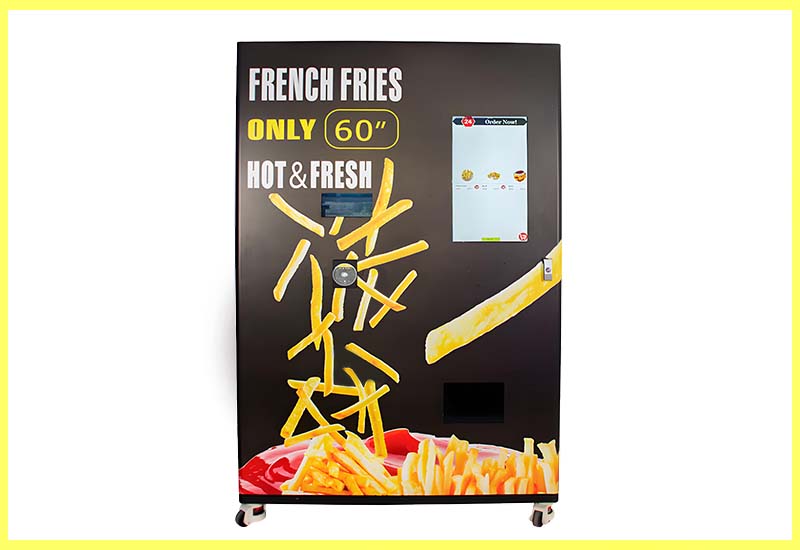 French Fries Vending Machine features a dual-tank frying system, offering ample storage capacity and the ability to fry a variety of snacks. The versatility of our hot fries vending machine enhances its appeal and profitability, catering to diverse tastes. The hot fries vending machine's automated processes ensure consistent quality and hygiene, while its user-friendly interface makes ordering quick and easy. Its sleek, modern design complements any location, making the french fries vending machine a practical and attractive addition to any venue.