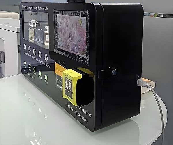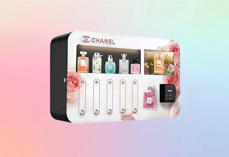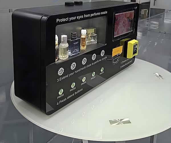 This perfume vending machine is suitable for dispensing various fragrances, including classic and seasonal scents.